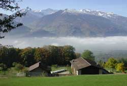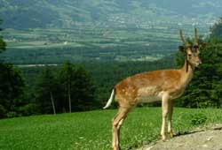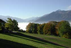 Der Hof liegt etwas oberhalb von Maienfeld im Kanton Graubünden auf 850m. Maienfeld selbst befindet sich auf 504m im Churer Rheintal auf der rechten Talseite, am Fusse des Falknis. Gegenüber von dem Kurort Bad Ragaz und südöstlich von Sargans. Maienfeld gab es schon bevor die Römer in den Alpen einmarschierten, genaue Zahlen sind jedoch nicht bekannt. Es gibt lediglich seltene Bronzefunde und einen so genannten Schalenstein, welche man in einem Kellergewölbe gefunden wurden. 831 wurde die Existenz von Maienfeld, damals Maienvelt, schriftlich festgehalten. Seit nun fast 2000 Jahren ist diese Region für ihren Weinanbau bekannt und bringt immer wieder Weltmeister-Weine hervor. Ausserdem ist es das Land der Pferde. Jedes Jahr finden hier wichtige nationale und auch internationale Turniere statt. Berühmt wurde dieses schöne Städtchen durch die Heidi-Geschichte von Johanna Spyri im Jahre 1880. Noch heute kommen Touristen aus aller Welt um den Dreh- und Handlungsort von Heidi zu sehen. Etwa 500m unterhalb der Alphütte von Heidi und ihrem Alm-Öhi stehen jetzt die Damhirsche in ihrem Gehege und sind inzwischen auch eine kleine Attraktion für alle Wanderer. Der Hof selbst steht mitten auf einer grossen Lichtung umgeben von herrlichen Mischwälder und besticht durch seine traumhafte Aussicht. Nicht selten geniesst man dort oben die warmen Sonnenstrahlen, während das Tal in dicken Nebelschwaden liegt. Eine schmale Waldstrasse führt den Berg hinauf, ähnlich wie in den Terpentinen. Sie schlängelt sich an der östlichen Bergseite des Falknis entlang und schon der Blick ins Rheintal, während des gemütlichen Aufstiegs, ist lohnenswert.